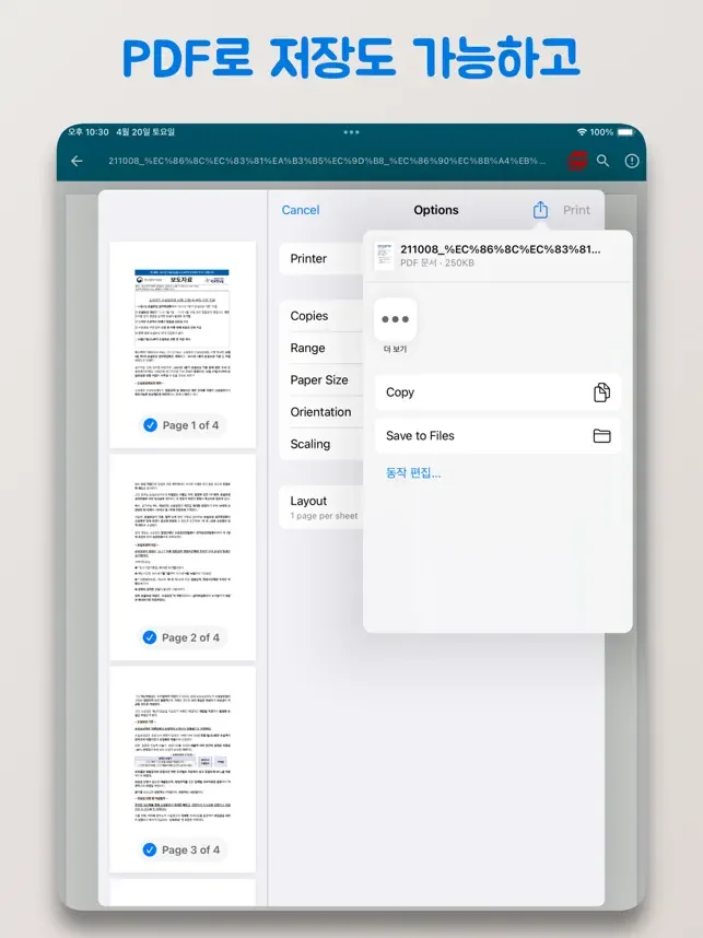 - 이제 PDF 저장이 가능합니다!!!(별도로 한글을 PDF로 변환하는 앱 대치 가능)