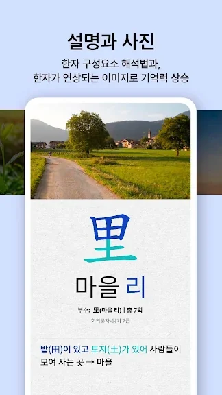 - 메인 화면에 바로 뜨는 "1분 사자성어"로 하루에 사자성어 1개씩 꾸준하게 학습합시다!