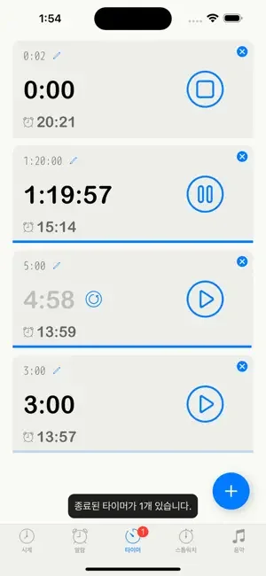 타이머: 1초 ~ 99시간의 타이머를 여러 번 동시에 움직일 수 있습니다. 프리셋·이력으로부터 간단 재생. 화면이 사라져도 알림으로 알려드립니다.