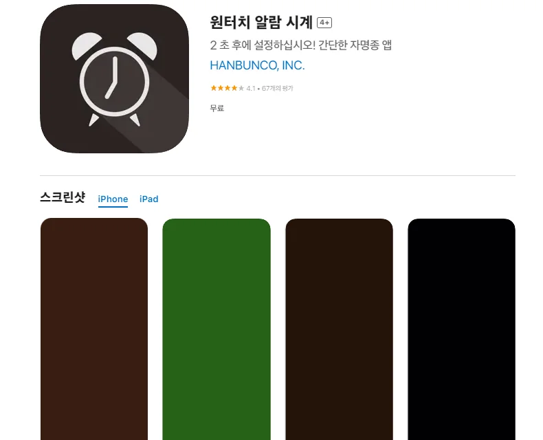 아래는 아이폰 원터치 알람 시계 어플 스크린샷 정보입니다. 원터치 알람 시계 어플 스크린샷 정보를 확인하고 싶으신분은 아래를 참고하시기 바랍니다.