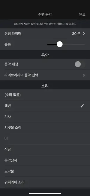- 수면 타이머(수면 음악)