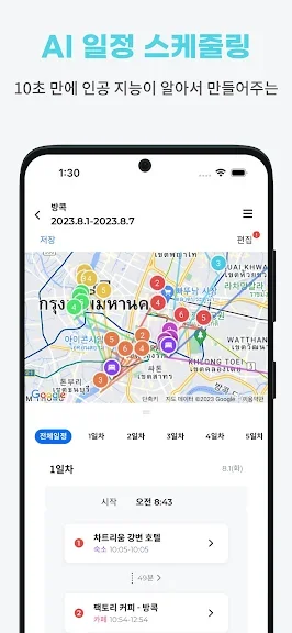 클릭 몇 번으로 최적화된 여행 일정을 자동으로 만들 수 있습니다.