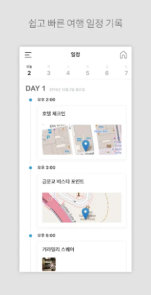 - 여행지에서 편리하게 이용 가능한 일정표 제공