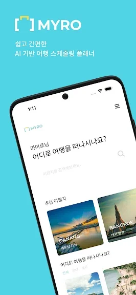 마이로는 여행자들이 더욱 편하게 일정을 준비할 수 있도록 인공지능 기반의 여행 플래너를 제공하는 서비스입니다.