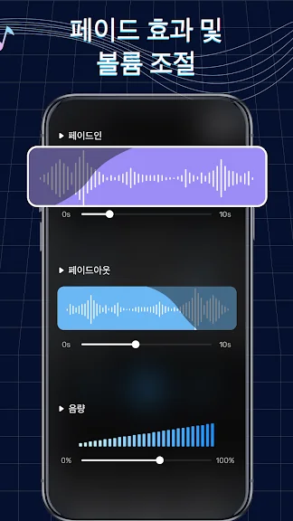 이 앱의 다양한 기능은 사용자의 편의를 극대화합니다. 잘라내기, 복사, 붙여넣기와 같은 기본적인 편집 기능을 지원하며, MP3 파일의 볼륨 조절과 페이드 인/아웃 효과도 적용할 수 있습니다. 스크롤 가능한 웨이브폼과 5단계 줌 기능을 통해 편집의 정확성을 높여줍니다.