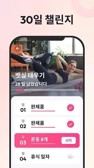 2) 30일만에 뱃살 빼기 - 홈트레이닝, 평평한 배 만들기 어플 스크린샷