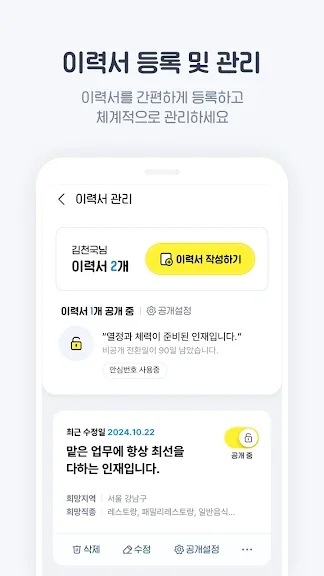 2) 편리한 이력서 관리와 푸시 알림 기능을 원하시는 분
