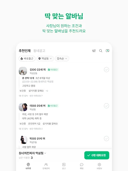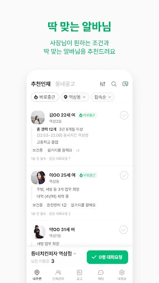 바로출근 가능한 주변알바 구한다면, 구직자에게 근무 제안 하고, 바로 채용 해요!