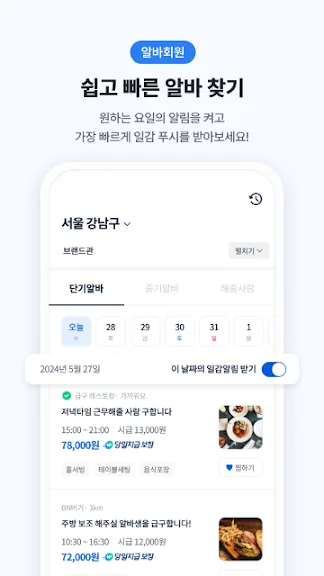 - 원하는 날짜와 조건에 맞춘 맞춤형 알바 추천