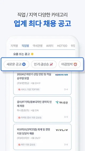국내 해외 일자리부터 내 직무 맞춤 채용 공고까지