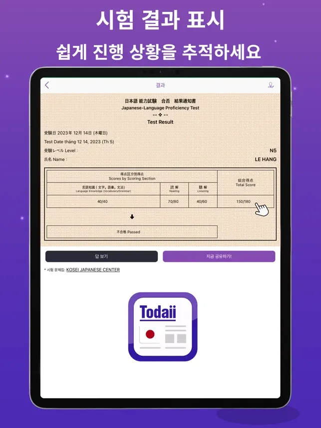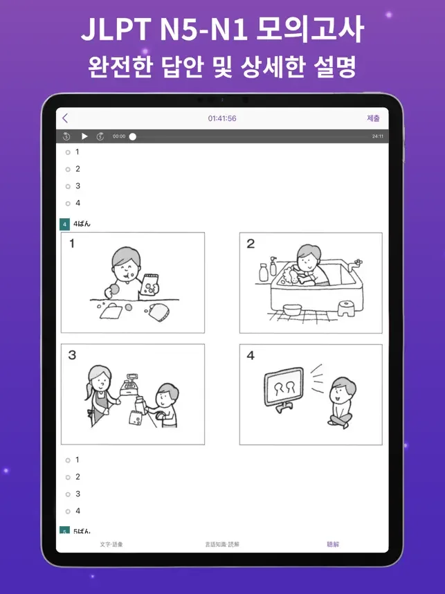 최고 점수 정복하세요! 모의기출는 꾸준히 업데이트되어서 매일 연습할 수 있습니다. JLPT는 당신 수중에 있습니다.
