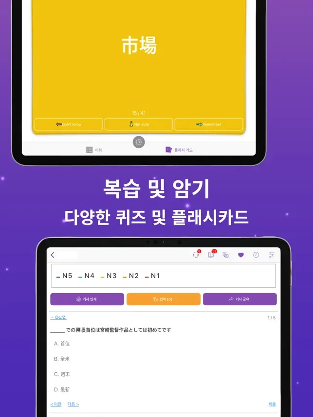 오프라인 모드: 오프라인으로 일본어 공부하고 인터넷 없이 뉴스를 읽으세요. 언제 어디서나 일본어를 공부하고 JLPT 시험을 준비하세요.
