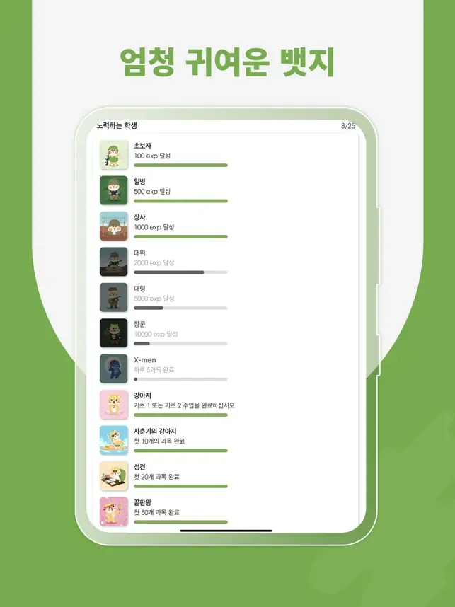 - 열심히 공부해서 미션을 완수하고, 코인 보상을 얻으며 게임하듯 즐겁게 배워봐요!