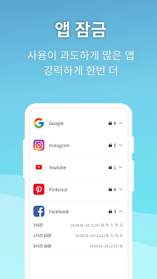 유튜브, 게임, SNS 등 부모님이 지정한 앱 잠금!