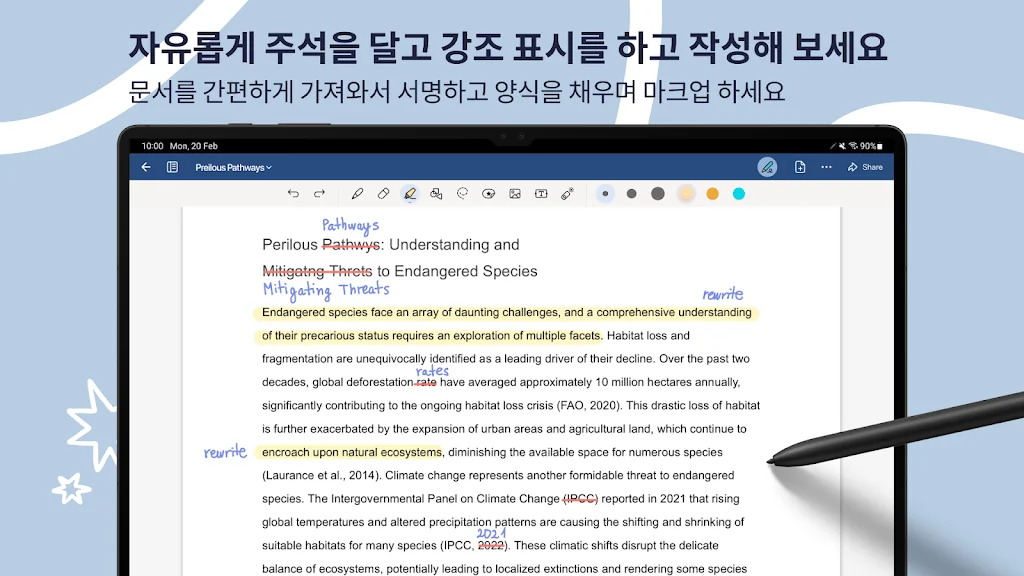 ** PDF와 같은 기존 파일을 가져와서 즉시 주석을 추가할 수 있습니다. **
