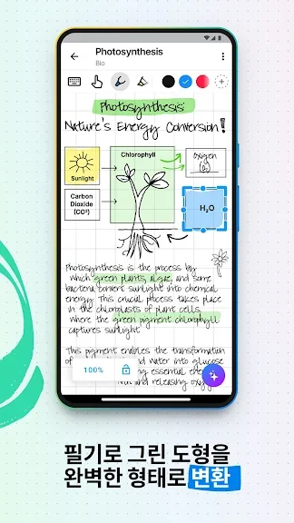 - 다양한 실감 나는 펜과 형광펜을 사용하여 아름다운 손글씨 노트를 작성하세요. 필기체에 미적인 터치를 추가할 수 있는 만년필을 사용해 보세요.