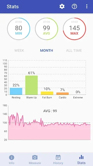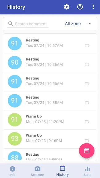 모든 심박수 데이터가 저장되고 멋지게 표시됩니다. 데이터는 카테고리 별로 잘 구성되어 있습니다