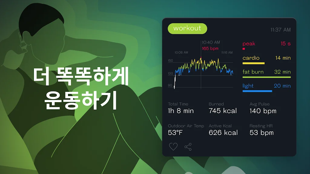 ★ 심박수 트레이닝 존 (휴식, 지방 연소, 카디오, 피크) 식별.