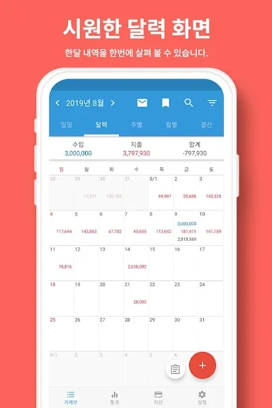 수입, 지출 입력을 자산과 연결하는 복식부기를 지원하는 가계부입니다.