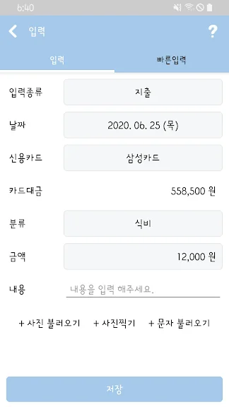 - 지난 문자 입력 및 문자 자동화 기능으로 내역을 입력할 수 있습니다.