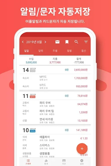 SMS문자를 자동으로 읽어오고, 카테고리를 자유롭게 설정 할 수 있으며,