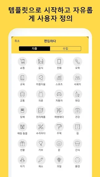 다양한 카테고리 아이콘 지원 및 원하는 순서대로 카테고리 정렬기능 제공