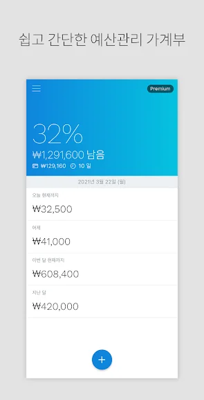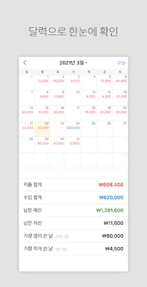 손쉽게 지출/수입 내역을 기록하면, 예산에 관련된 정보를 한눈에 확인하실 수 있습니다.