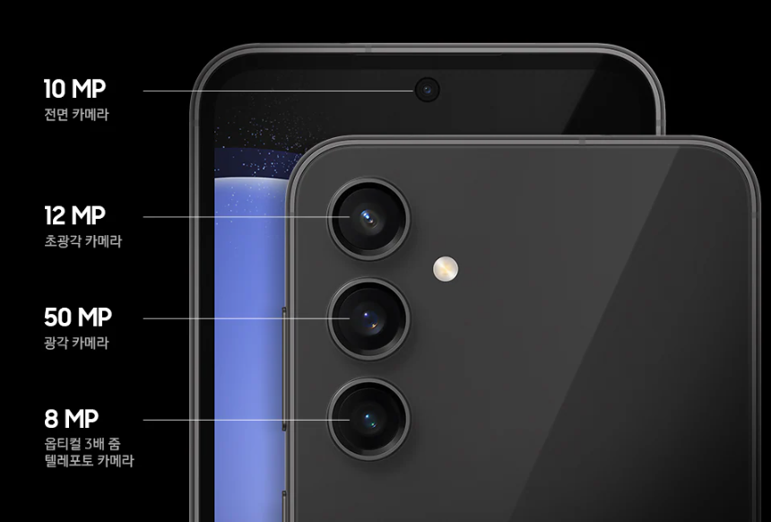 갤럭시 S23 FE의 카메라는 그야말로 플래그십에 준하는 성능을 보여줍니다. 후면에는 50MP 광각 카메라, 12MP 초광각 카메라, 8MP 망원 카메라(3배 광학줌)가 탑재되어 있어 다양한 구도의 사진 촬영이 가능하며, 인물 사진부터 풍경 사진까지 폭넓은 활용이 가능합니다. 또한 ‘나이토그래피’ 기술로 야간 촬영에서도 선명한 품질을 유지할 수 있습니다. 어두운 실내나 밤하늘을 배경으로 한 촬영에서도 생생한 색감과 디테일을 살려줍니다. 셀카용 10MP 전면 카메라 역시 우수한 품질을 자랑하며, 인물의 표정이나 피부 톤을 자연스럽게 표현해 줍니다. SNS에 바로 올려도 손색없는 수준의 사진을 누구나 쉽게 촬영할 수 있는 것이 큰 장점입니다.