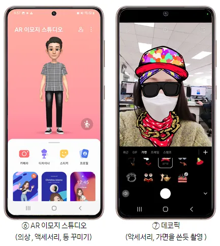 데코 픽 : 다양한 스피커를 적용해 사진 및 동영상을 촬영할 수 있습니다.