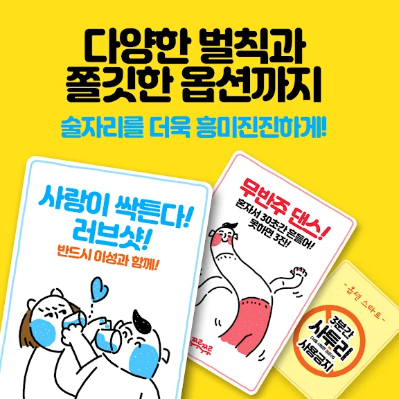 다양한 게임은 기본! 흥미진진한 벌칙과 미션, 웃음 터지는 옵션까지! 올인원 술자리 게임!!