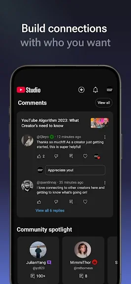 ● 댓글로 대화에 참여하고 크리에이터 및 다른 커뮤니티 회원과 소통