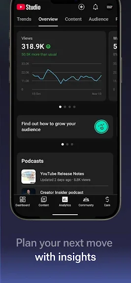 - 새로운 채널 대시보드로 콘텐츠와 채널의 실적 개요를 빠르게 확인합니다.