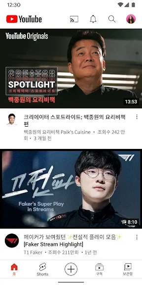 아래는 YouTube 어플에 대한 스크린샷 정보입니다.