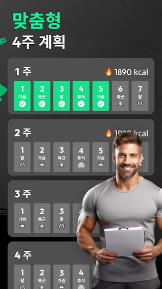 저희 앱을 꾸준히 이용하면 단 몇 주만에 신체가 변하는 것을 느낄 수 있게 됩니다.