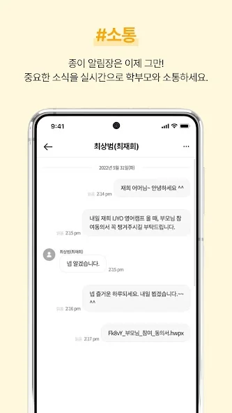 학부모와 1:1채팅으로 소통하실 수 있고,