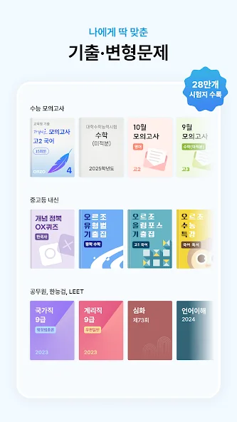 아래는 오르조 - 수능, 내신, 공무원, 한능검, 기출, 공부 어플에 대한 스크린샷 정보입니다.