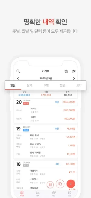 이 앱은 특히 매일의 지출 내역을 빠르게 기록하는 데 유용해요. 가령, 카페에서 커피를 사고 집 근처 편의점에서 간단히 결제할 때, 몇 번의 터치로 내역을 남길 수 있죠. 월간, 주간, 일간 보기 기능도 있어서 소비 패턴을 쉽게 파악할 수 있어요.