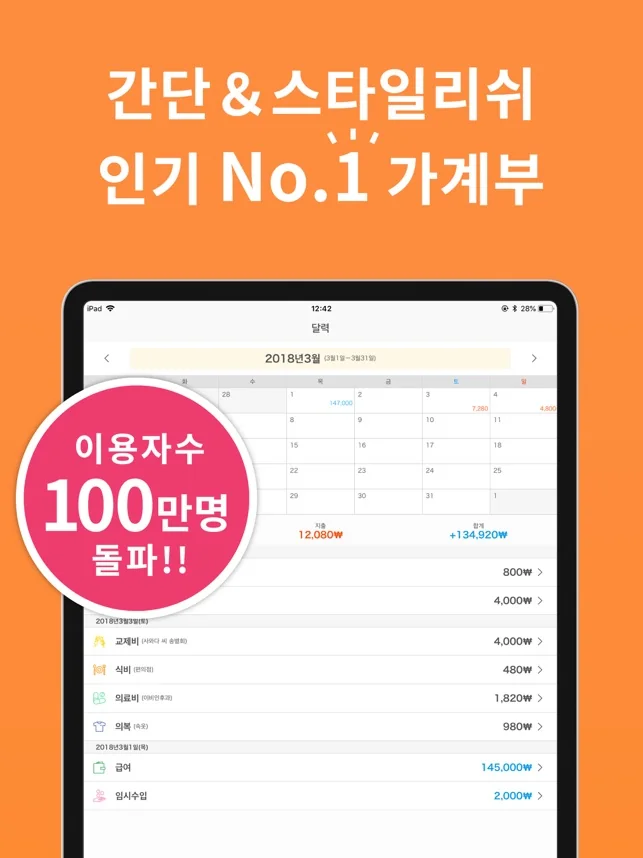2) 아이폰 편한가계부 - 똑똑가계부,용돈 기입장, 심플한 가계부 어플 스크린샷