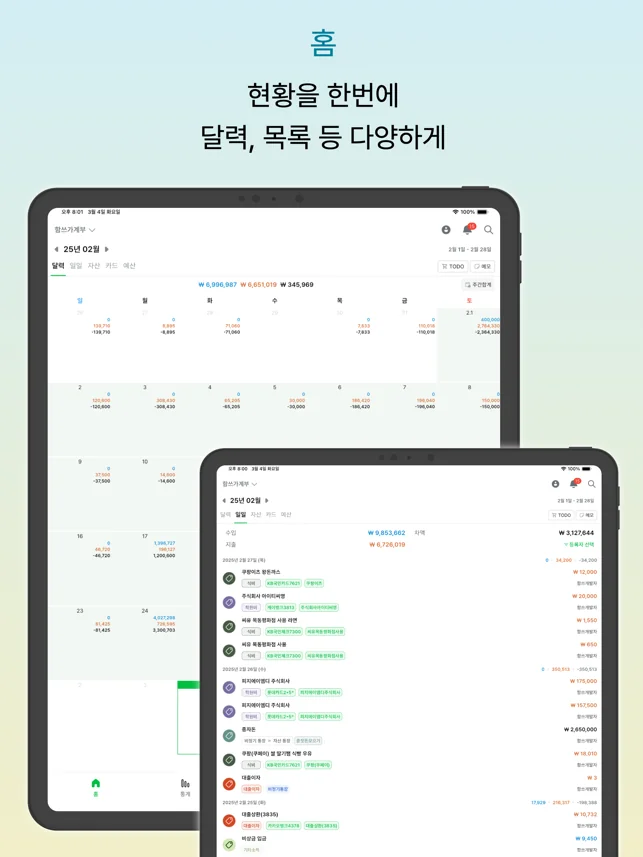 게다가 PC와의 연동이 가능해서 큰 화면에서 더 세밀하게 관리하거나, 백업과 복원도 손쉽게 할 수 있어요. 자산관리와 예산설정, 이체 기능까지 갖추고 있어, 일상 속에서 부담 없이 활용할 수 있답니다.