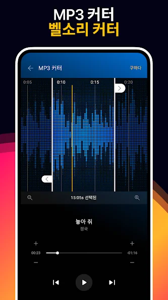 좋아하는 노래의 일부를 잘라 벨소리나 알림음으로 만들어보는 기능도 갖췄어요. 간단한 편집이 가능해서, 나만의 맞춤 벨소리도 쉽게 만들어낼 수 있답니다. 음악을 좀 더 내 입맛에 맞게 활용하고 싶을 때 딱이죠.