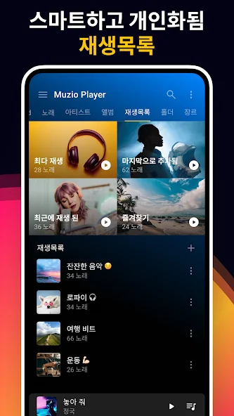 직접 만든 플레이리스트도 풍부한 사운드와 다양한 음향 효과와 함께 즐길 수 있어서, 집이나 출근길에 음악 감상이 더 즐거워지죠. 사용자 인터페이스도 깔끔하고 직관적이어서, 누구나 쉽게 사용할 수 있어요.
