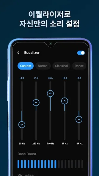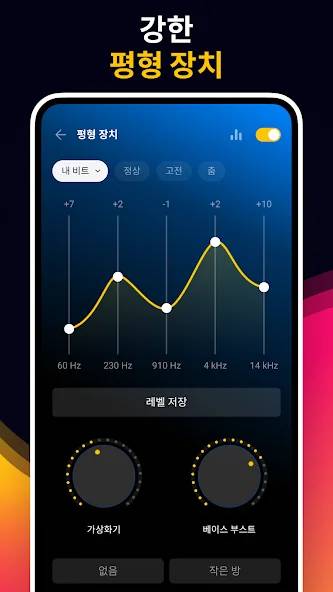 특히 이퀄라이저가 참 마음에 들어요. 여러 사전 설정과 베이스 부스트, 3D 리버브까지 조절할 수 있어서, 듣는 음악에 딱 맞게 조절하며 감상할 수 있거든요. 또 벨소리 만들기 기능도 있어서, 좋아하는 부분만 잘라내서 벨소리로 쓸 수 있는 점도 실용적이에요.