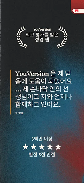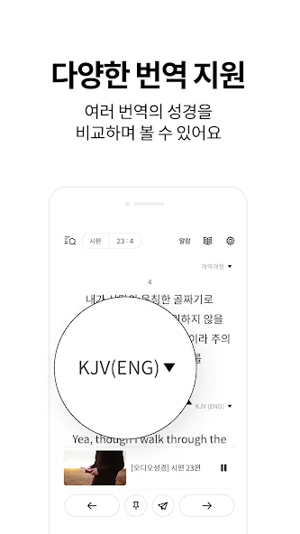 이 앱은 다양한 성경 번역본을 제공해서, 자신에게 맞는 버전을 선택해 읽기 편하게 볼 수 있어요. 성경 구절을 1절부터 5절까지 보여주거나, 두 가지 버전과 비교하며 읽는 것도 가능하죠. 읽기 어려운 환경에서는 오디오 성경 기능이 큰 도움이 될 거예요.