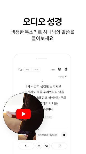 성경 + 오디오 어플에 대한 스크린샷 정보가 필요하시다면 아래 이미지를 참고하시기 바랍니다.