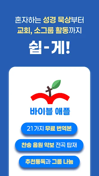 성경을 읽거나 듣는 것뿐 아니라, 다양한 사람들과 함께 묵상하며 신앙 생활을 풍성하게 만들어보세요. 바이블 애플은 누구나 쉽게 성경과 찬송가를 접하고, 일상 속에서 자연스럽게 신앙을 실천할 수 있도록 도